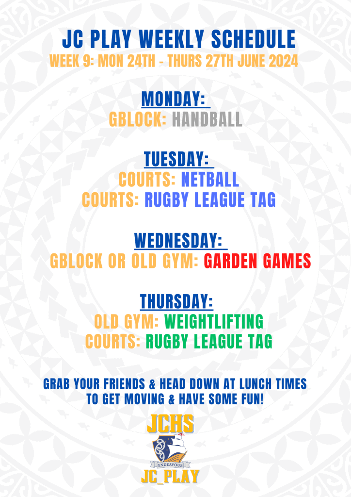 What’s on JC Play for this week? Here’s a look at what students can participate in each day to be active and/or try something new.